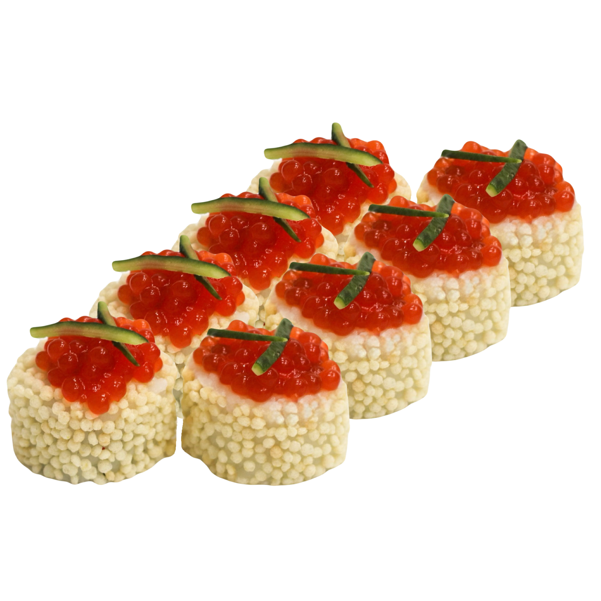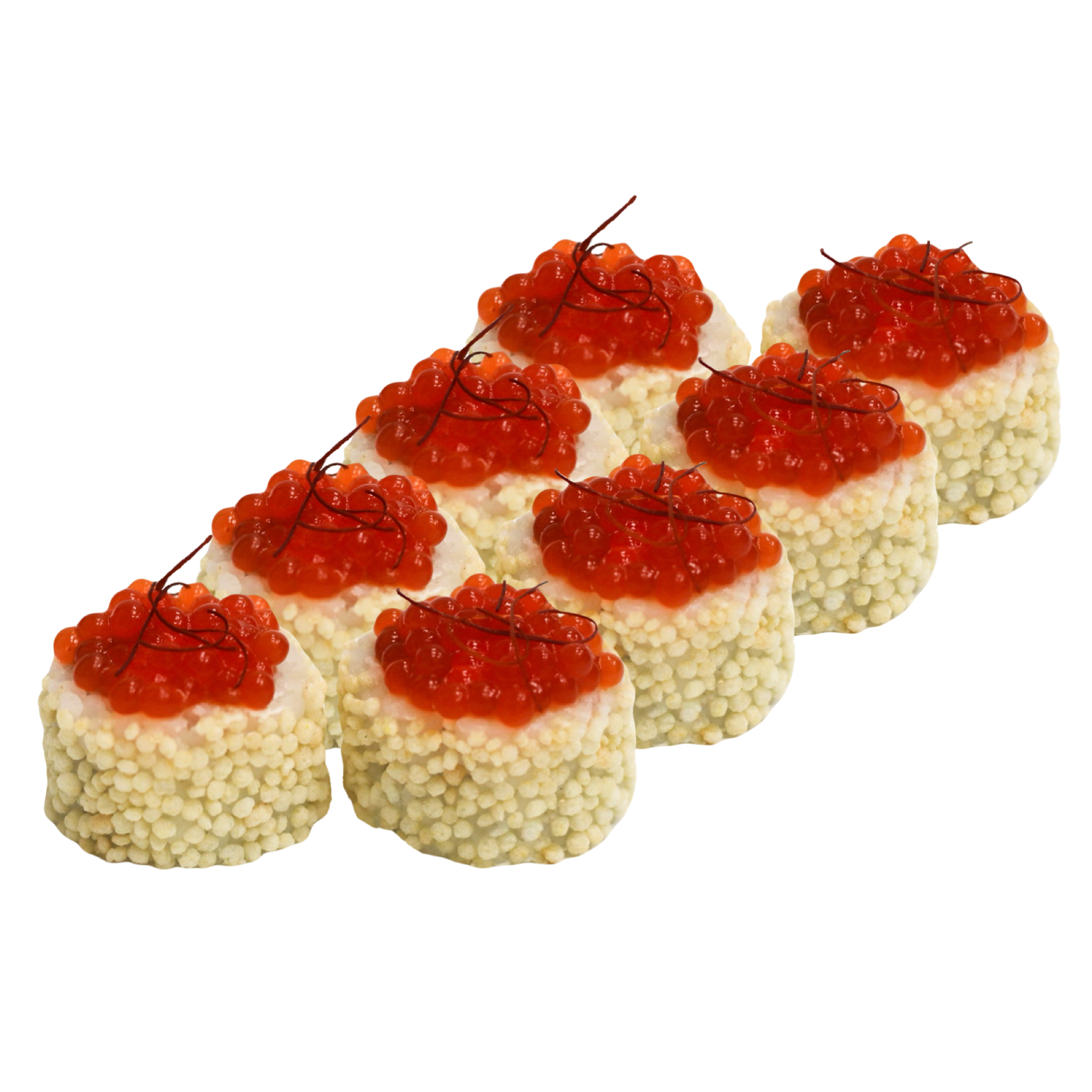 *на фото зображено роли з пікантною сирною шапочкою, при замовленні ролів з НЕ пікантною шапочкою, зовнішій вигляд ролів буде дещо іншого світлішого кольору, за рахунок відсутності гострого соусу Шрирача